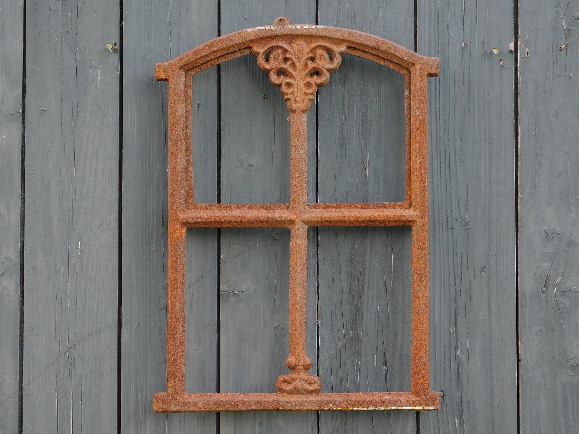 Dit authentieke gietijzeren stalraam met kiepfunctie is een prachtige decoratieve én functionele toevoeging. Het raam is onbehandeld en heeft een natuurlijke roestlaag, waardoor het de uitstraling krijgt van echt antiek. Met een totale afmeting van ca. 46,5 cm hoog en 33,5 cm breed is dit raam geschikt voor renovatieprojecten, tuinmuren of als bijzondere decoratie in en rondom huis.