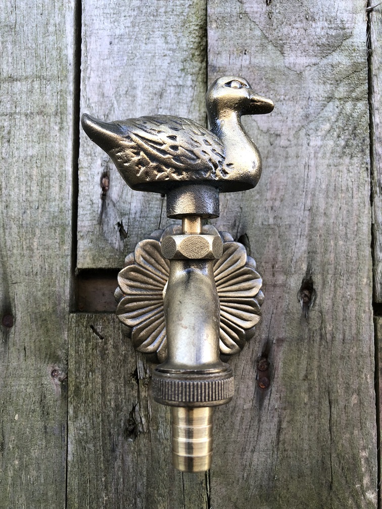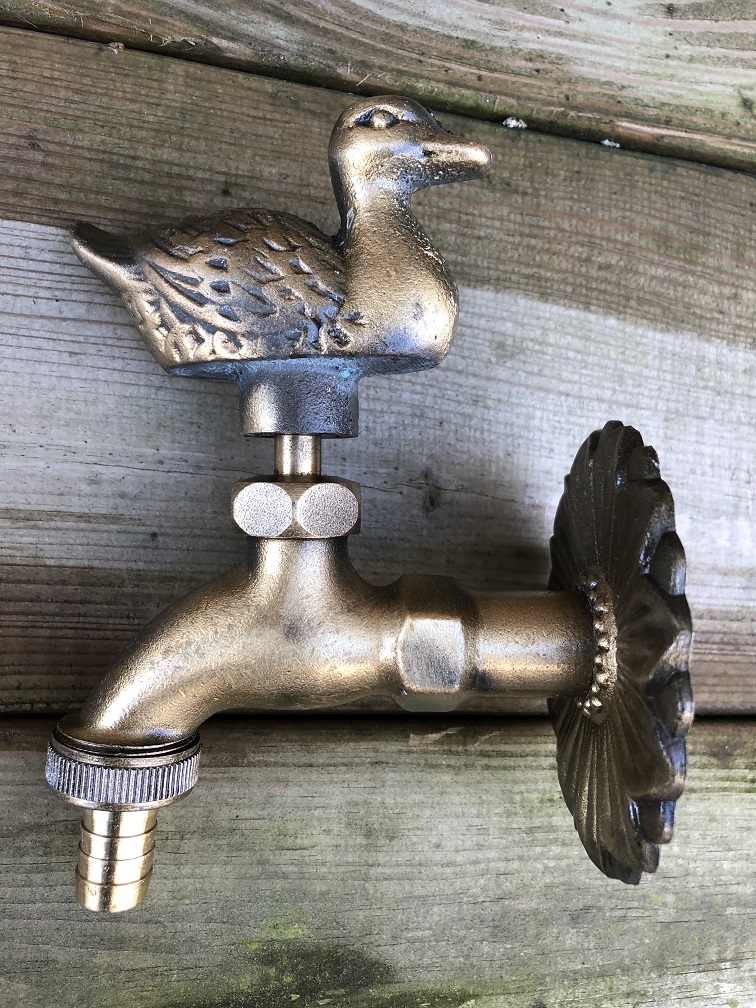 Waterkraan met eend voor tuin fonteinen, messing, mooi!