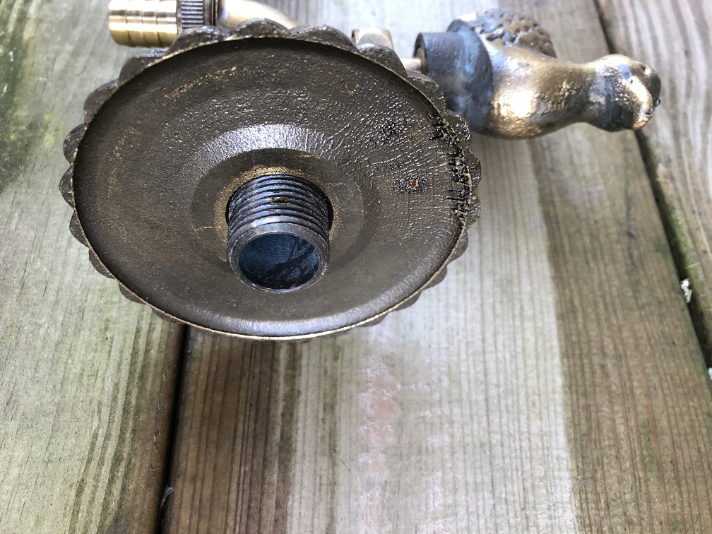 Als ongebruikelijk eye-catcher aan de muur of op het terras: Deze mooie en zeer smaakvol ingerichte, in landelijke stijl vormgegeven kraan met aansluitmogelijkheid voor een tuinslang !