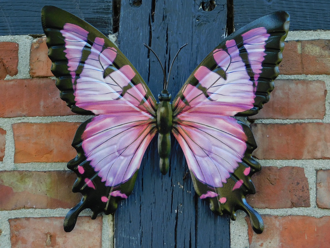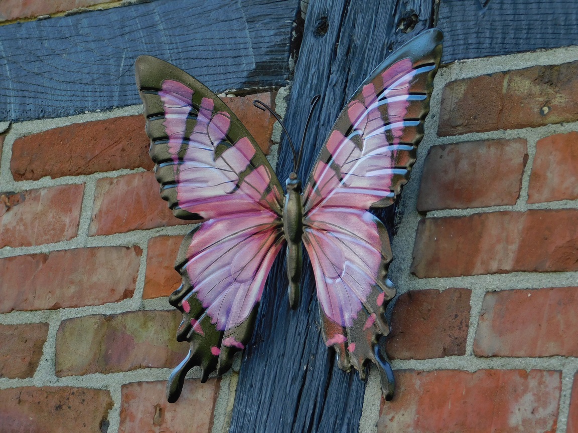 Give your wall a unique look with this purple butterfly with black details. Thanks to the hanging hook on the back, it's easy to hang. Measuring approximately 32 cm high and 35 cm wide, this stylish decoration is sure to catch the eye.