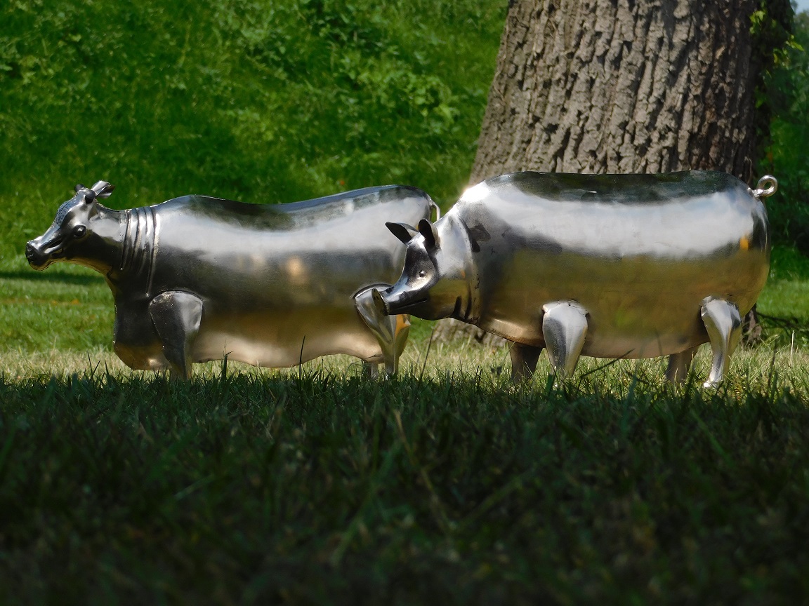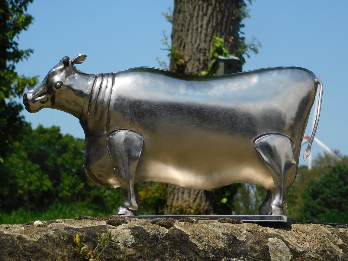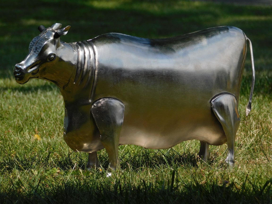 Beeld Koe - metaal - chroom kleur, laatste!!